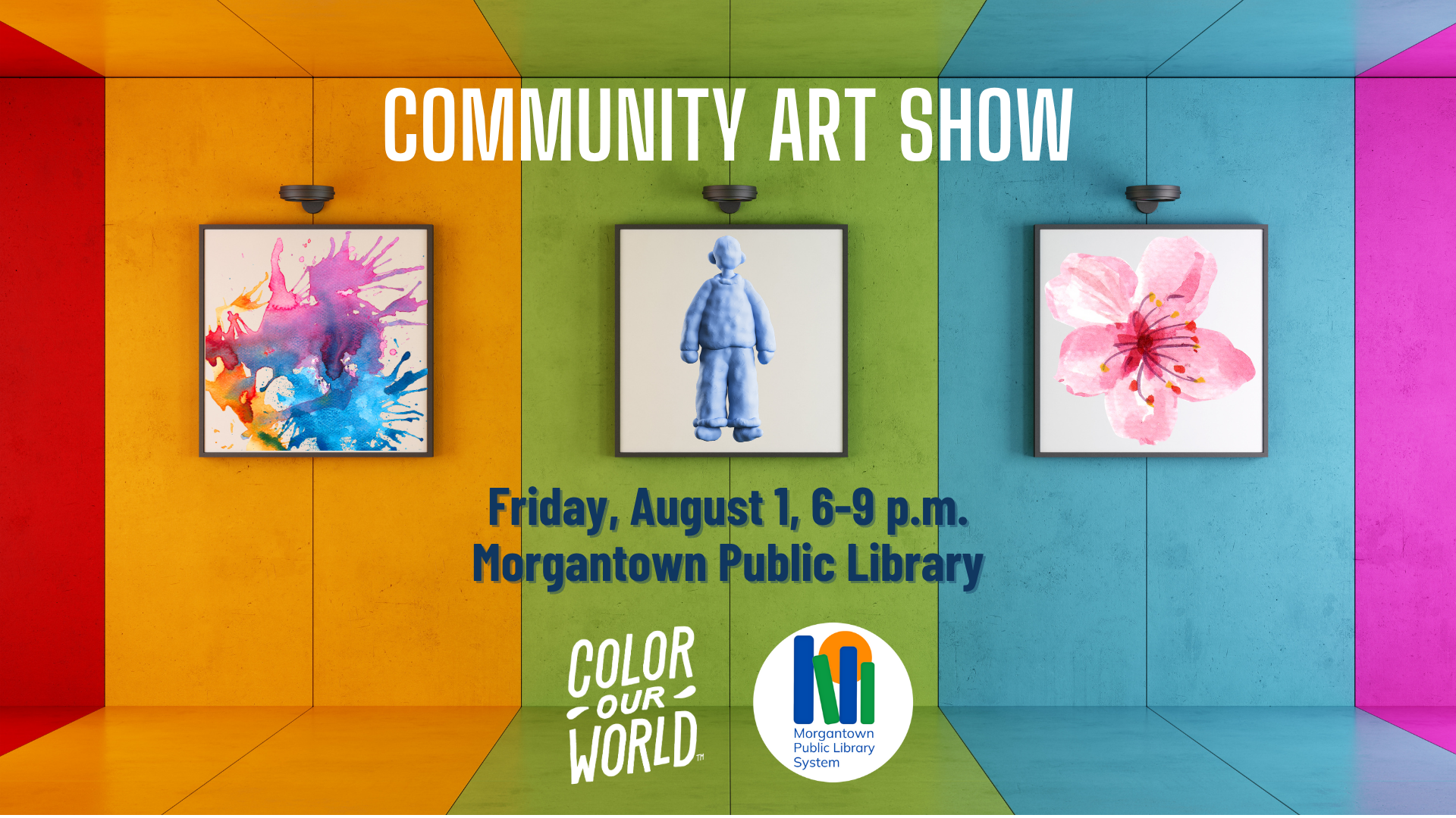 This event is for all ages. Submit your art at any of our Morgantown Public Library System locations from July 21-28. Large or potentially breakable art pieces should be brought directly to the Morgantown Public Library. Your art will be returned after the show. One submission per artist, please.